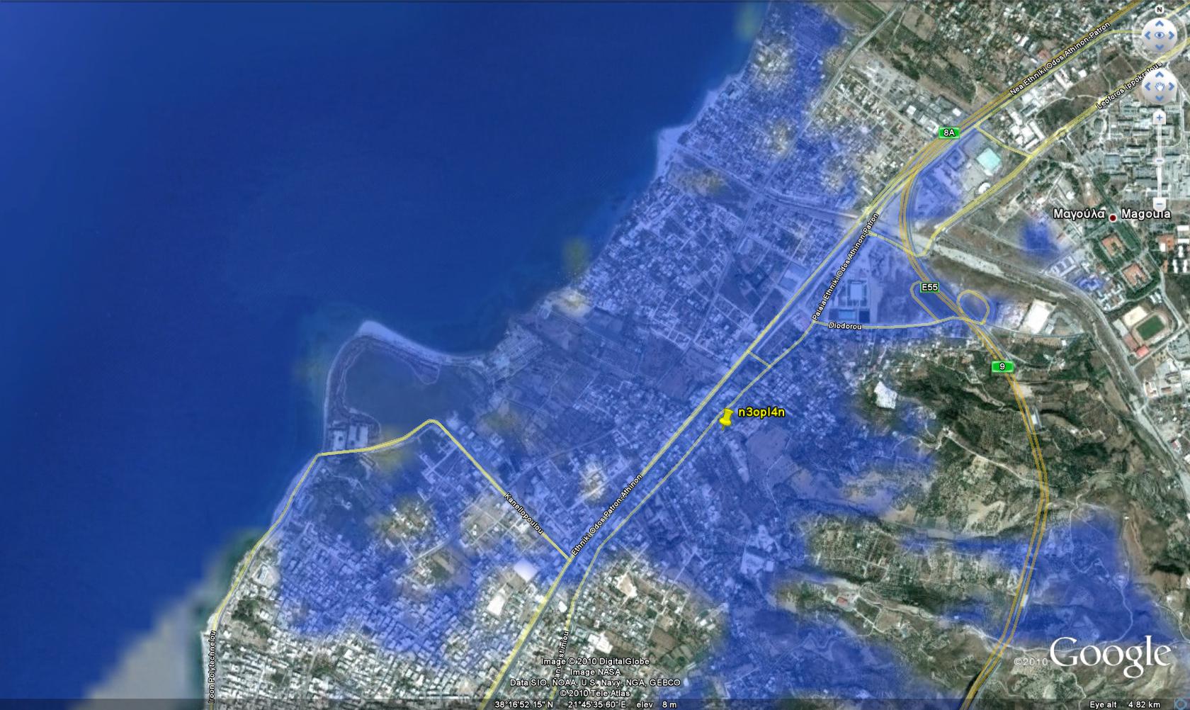 Με ένα ωραίο προγραμματάκι που ανακάλυψα (δεν είναι καινούριο, πολλοί να το ξέρουν ήδη) μπορεί κανείς να τοποθετήση τον κόμβο του και να του βγάλει το σχεδιάκι με την οπτική που έχει περιμετρικά. Μπορεί μετά να το περάσει στο google earth και να έχει μια ωραία εικόνα για την περιοχή που καλύπτει το access point του.